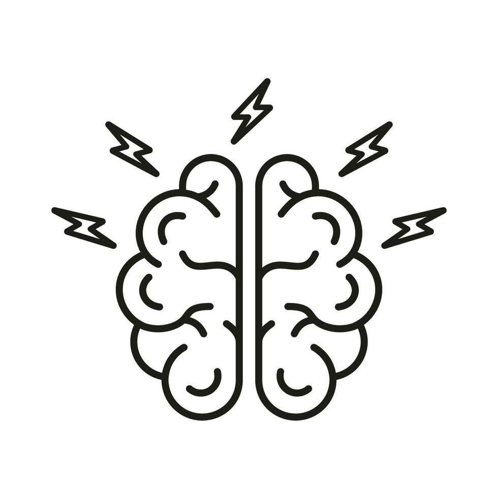 Brainstorming, Intellectual Process Symbol. Brainstorm Line Icon. Human Brain with Lightning Linear Pictogram. Think about Creative Idea Outline Sign. Editable Stroke. Isolated Vector Illustration. Pro Vector