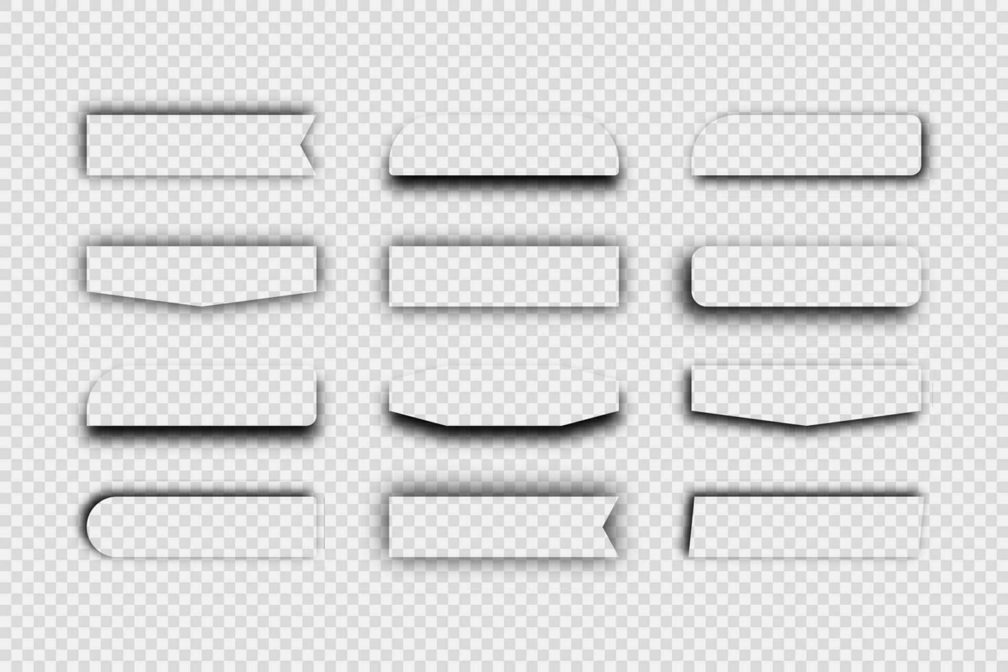 Dark realistic shadow. Set of twelve rectangular shadows Pro Vector