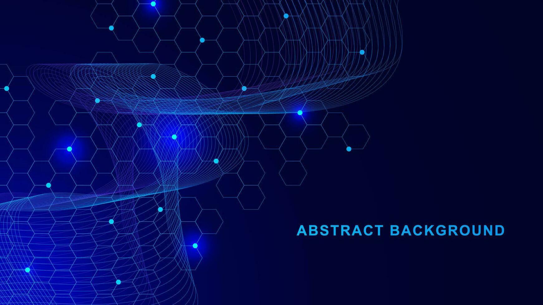 Abstract hexagon pattern with glowing particle and wave flow. Big data visualization, network connection, communication, science and technology background. Vector illustration. Pro Vector