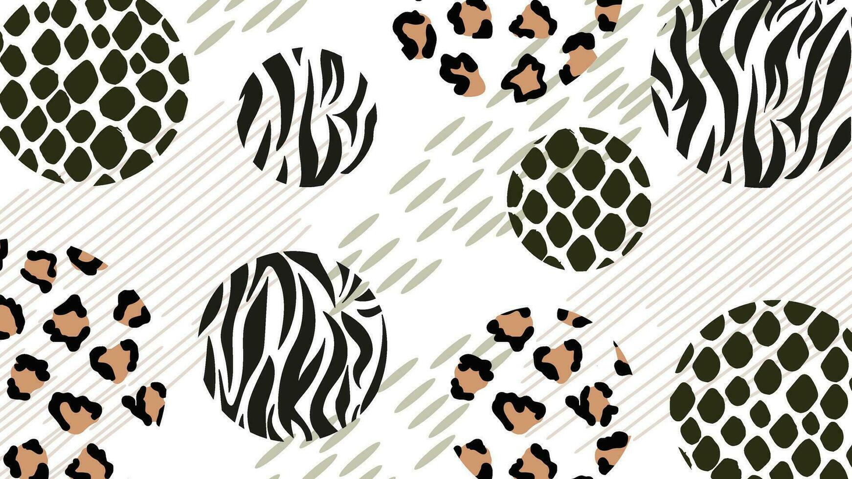 Abstract geometric background of animal fur and skin patterns. Modern patchwork style. Collage of zebra, snake, leopard patterns in circles. Vector. For fabric print, clothes, covers, textiles Pro Vector