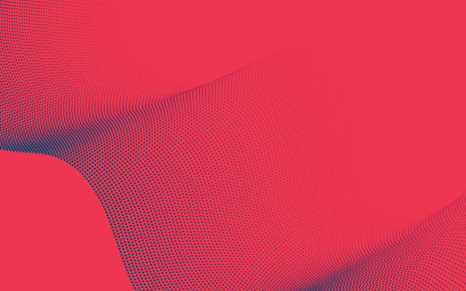 Abstract background with halftone dots. Bright blue waves on a red background. Comic style for website, presentation, banner Pro Vector
