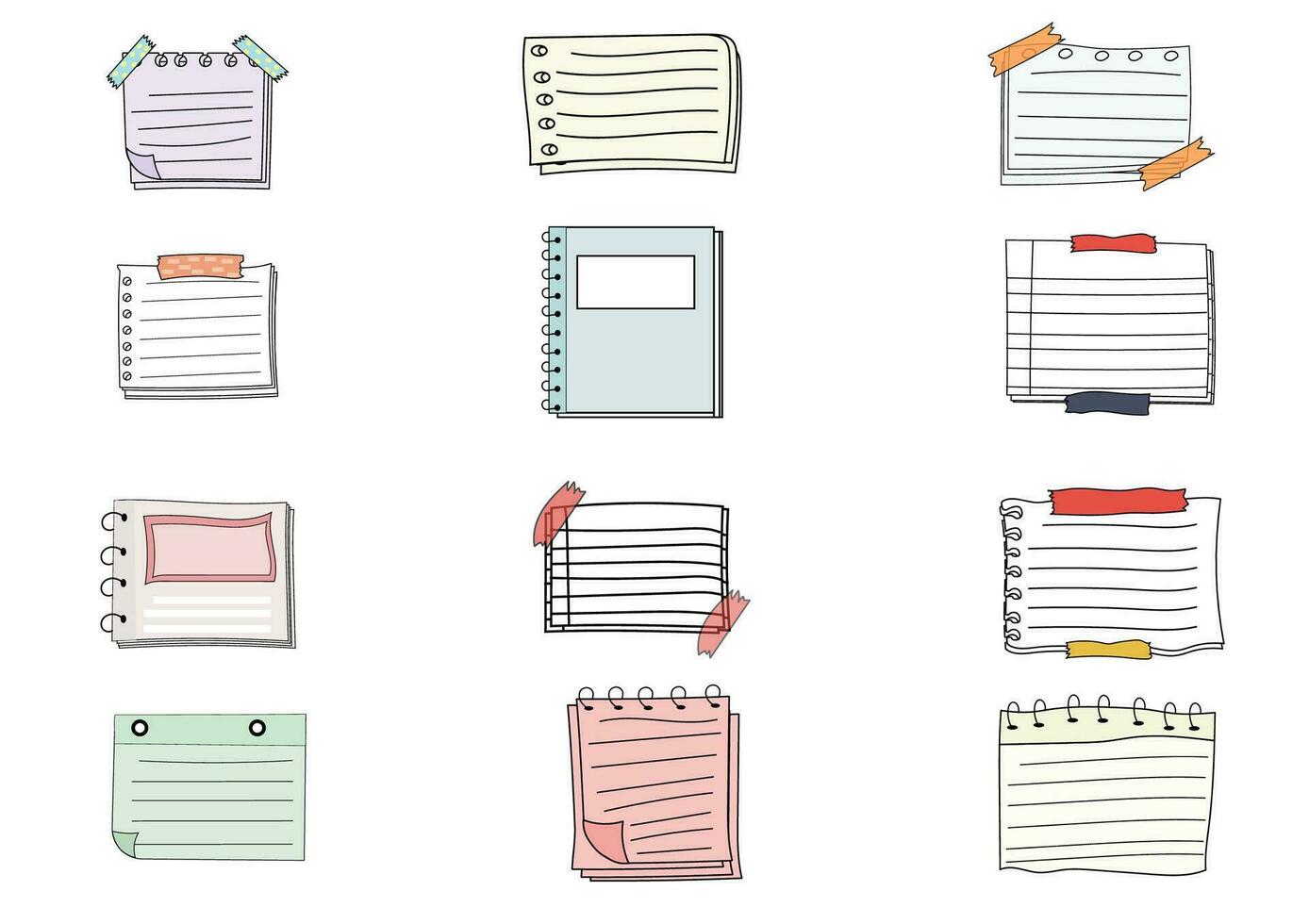 Paper note set.Blank notes with tape and stickers.Notebook collection with curled corners. Adhesive Note,Checked Pattern,Paper,Education. Vecter message and notepaper concept. Pro Vector