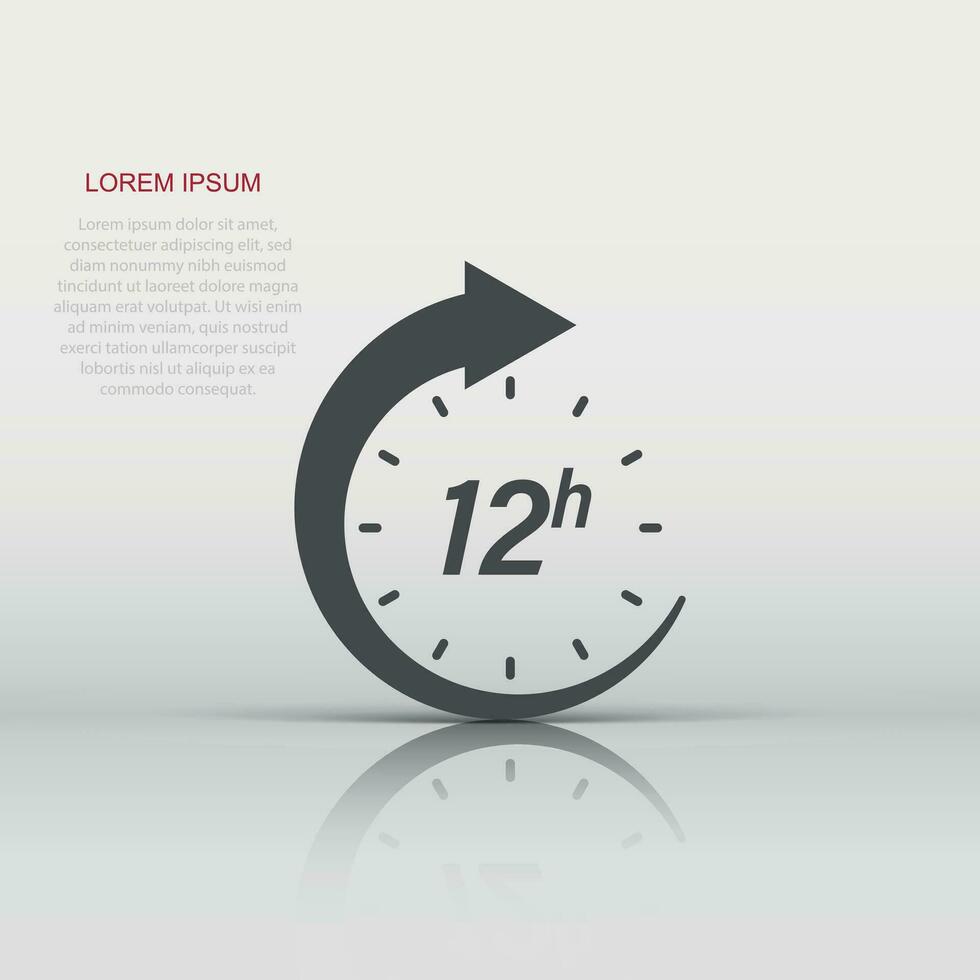 12 hour clock icon in flat style. Timer countdown vector illustration on isolated background. Time measure sign business concept. Pro Vector
