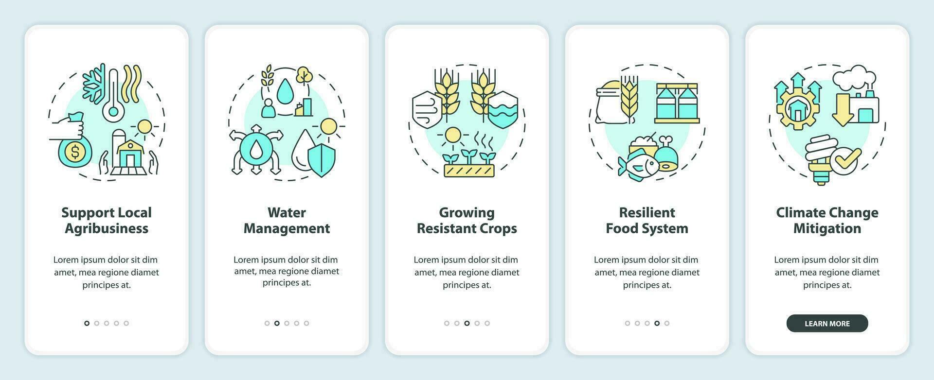 5 steps icons representing heatflation solution mobile app screen set. Graphic instructions with linear concept, UI, UX, GUI template.. Pro Vector