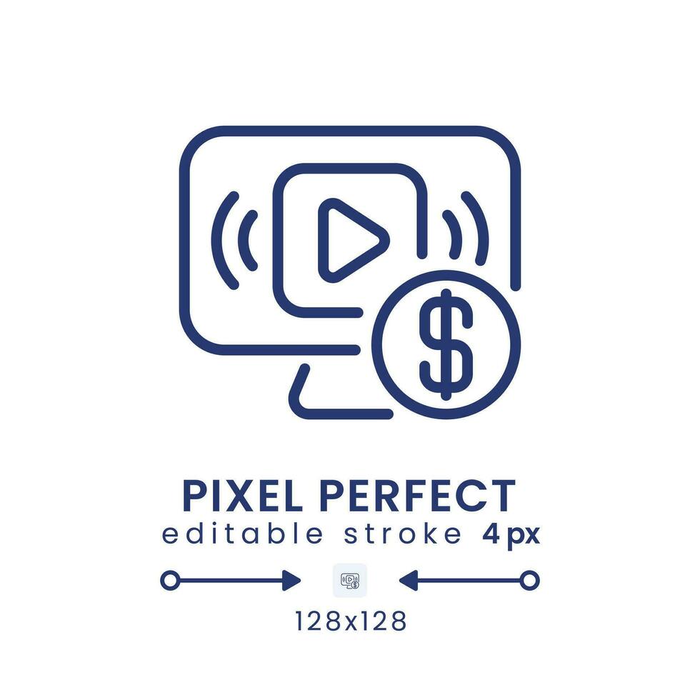 Streaming subscription plans linear desktop icon. Premium content. Ad-free viewing. Pixel perfect 128x128, outline 4px. GUI, UX design. Isolated user interface element for website. Editable stroke Pro Vector