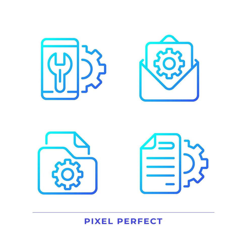Configuration pixel perfect gradient linear vector icons set. Smartphone repair service. File management. Thin line contour symbol designs bundle. Isolated outline illustrations collection Pro Vector and Pro SVG