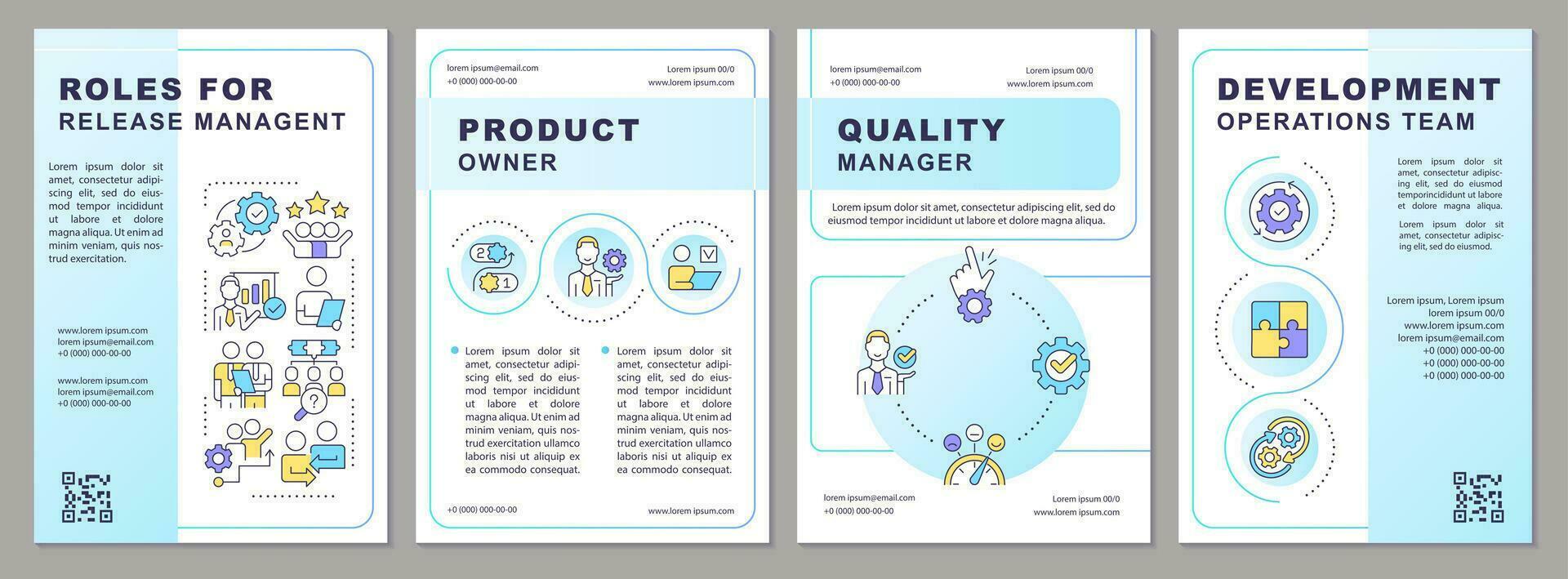 Roles for release team work brochure template. Software delivery. Leaflet design with linear icons. Editable 4 vector layouts for presentation, annual reports Pro Vector
