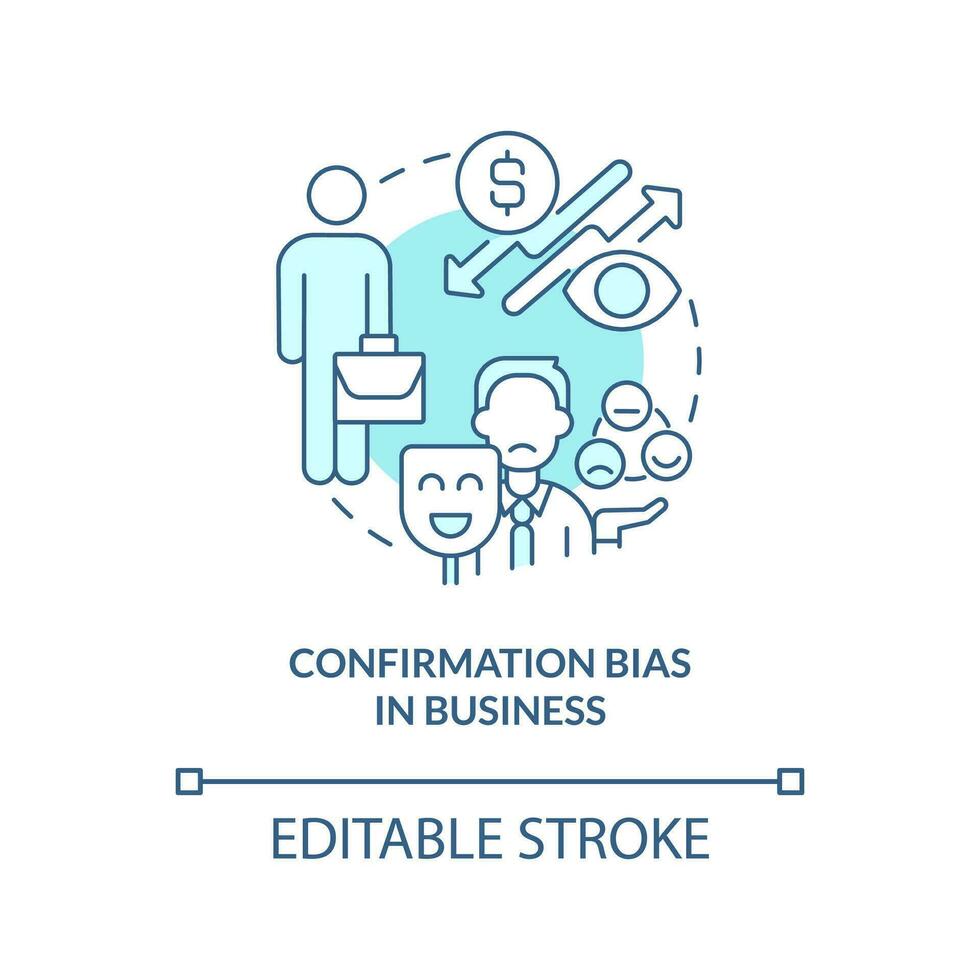 Confirmation bias in business turquoise concept icon. Unconscious prejudice example abstract idea thin line illustration. Isolated outline drawing. Editable stroke Pro Vector