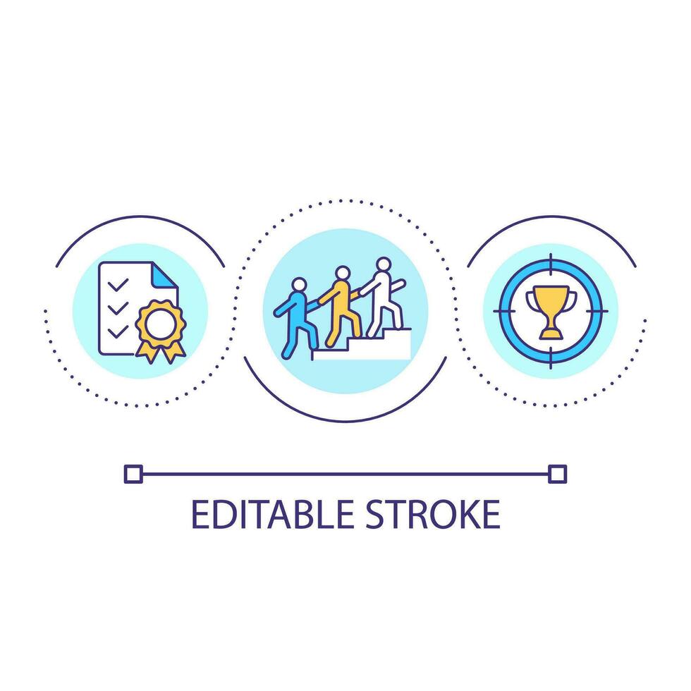 Achieving team success loop concept icon. Business activity abstract idea thin line illustration. High performance and productivity. Isolated outline drawing. Editable stroke Pro Vector
