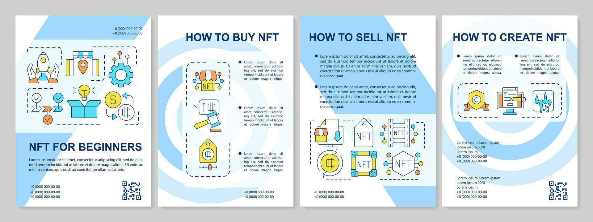 NFT guide for beginners blue brochure template. Crypto art. Leaflet design with linear icons. Editable 4 vector layouts for presentation, annual reports Pro Vector
