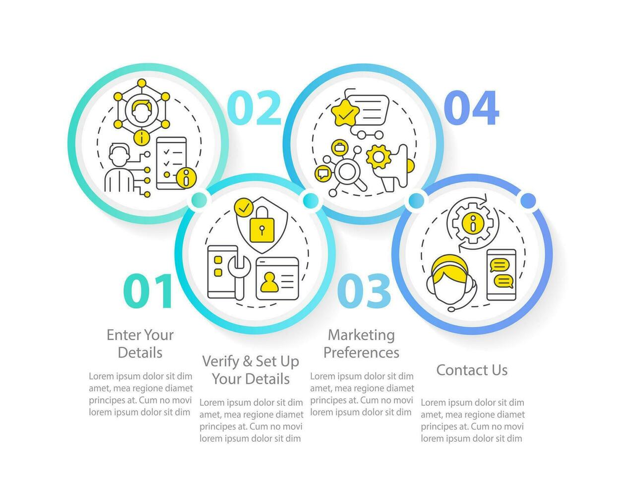 E banking app registration guide circle infographic template. Data visualization with 4 steps. Editable timeline info chart. Workflow layout with line icons Pro Vector