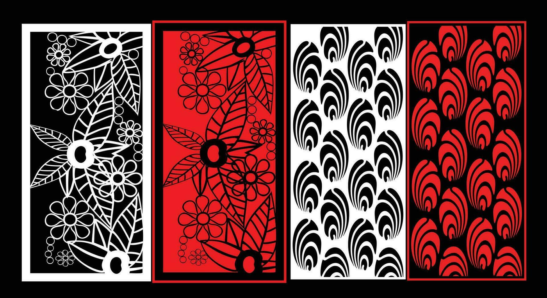 Decorative wall panels set Jali design CNC pattern,laser cutting pattern,router CNCcutting.Jali Laser cut decorative panel set with lace pattern. vector