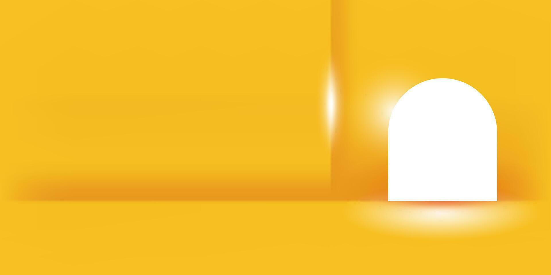 View of empty room in minimal style with yellow wallpaper. Dramatic open door scene for presentation. Vector template Pro Vector