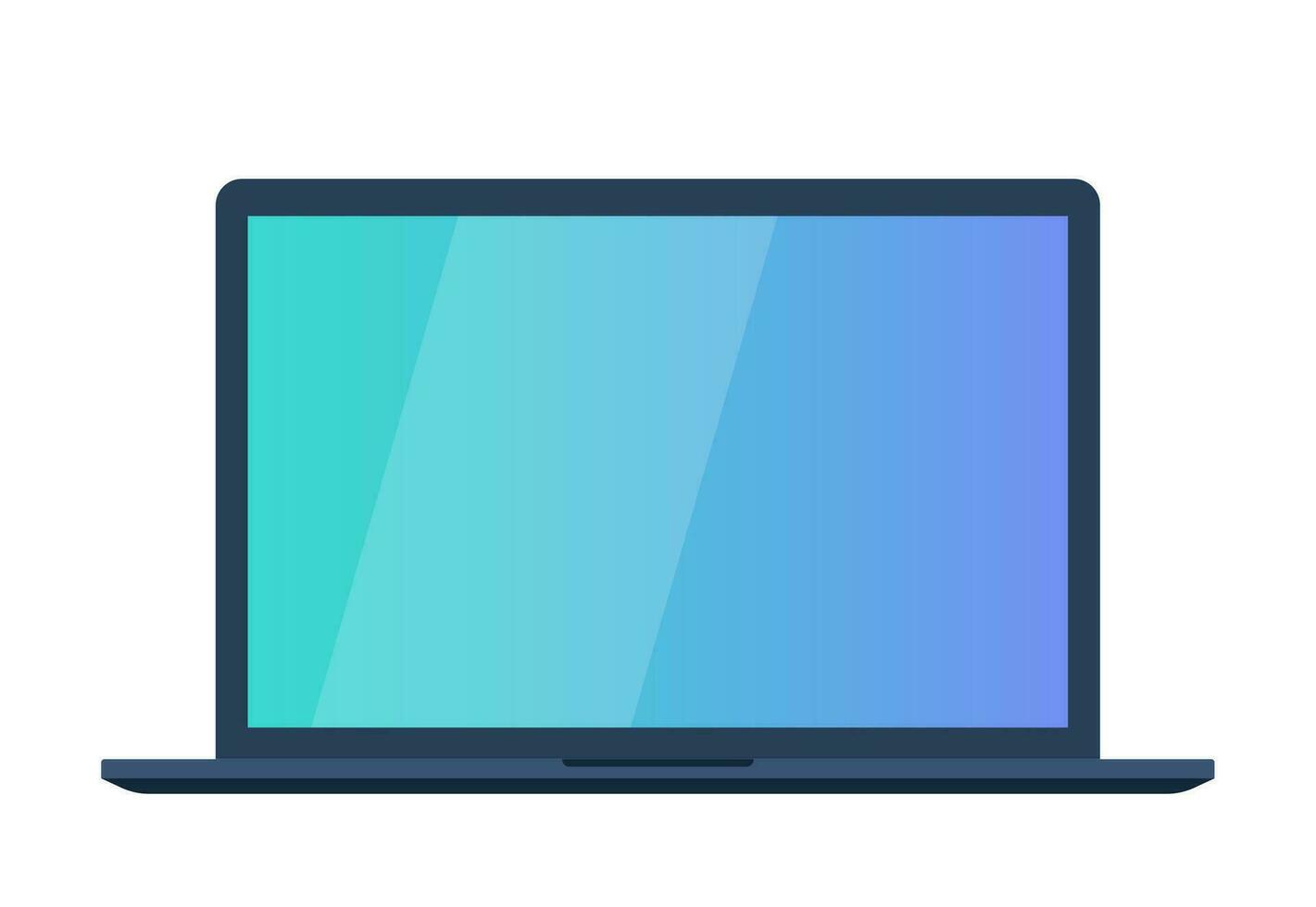 Laptop in flat style. Computer with empty screen, blank copy space on computer. Laptop front view. Vector illustration. Pro Vector