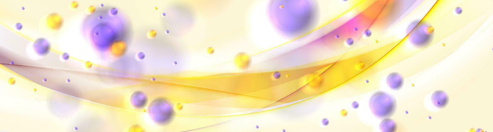 Yellow shiny waves with bokeh bubbles abstract banner Pro Vector