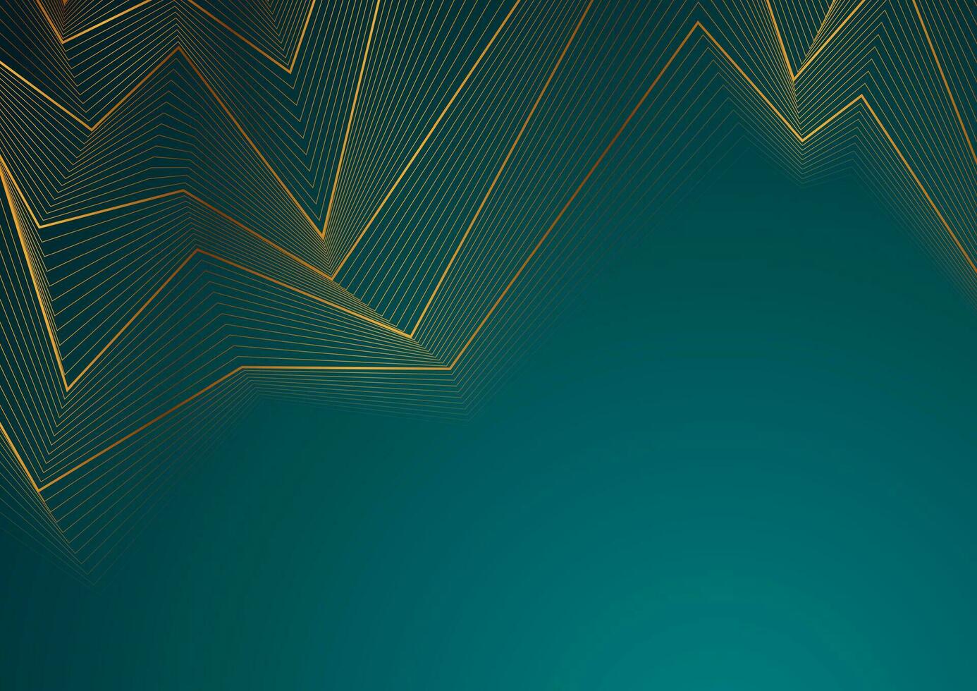 Turquoise abstract background with golden curved lines pattern Pro Vector