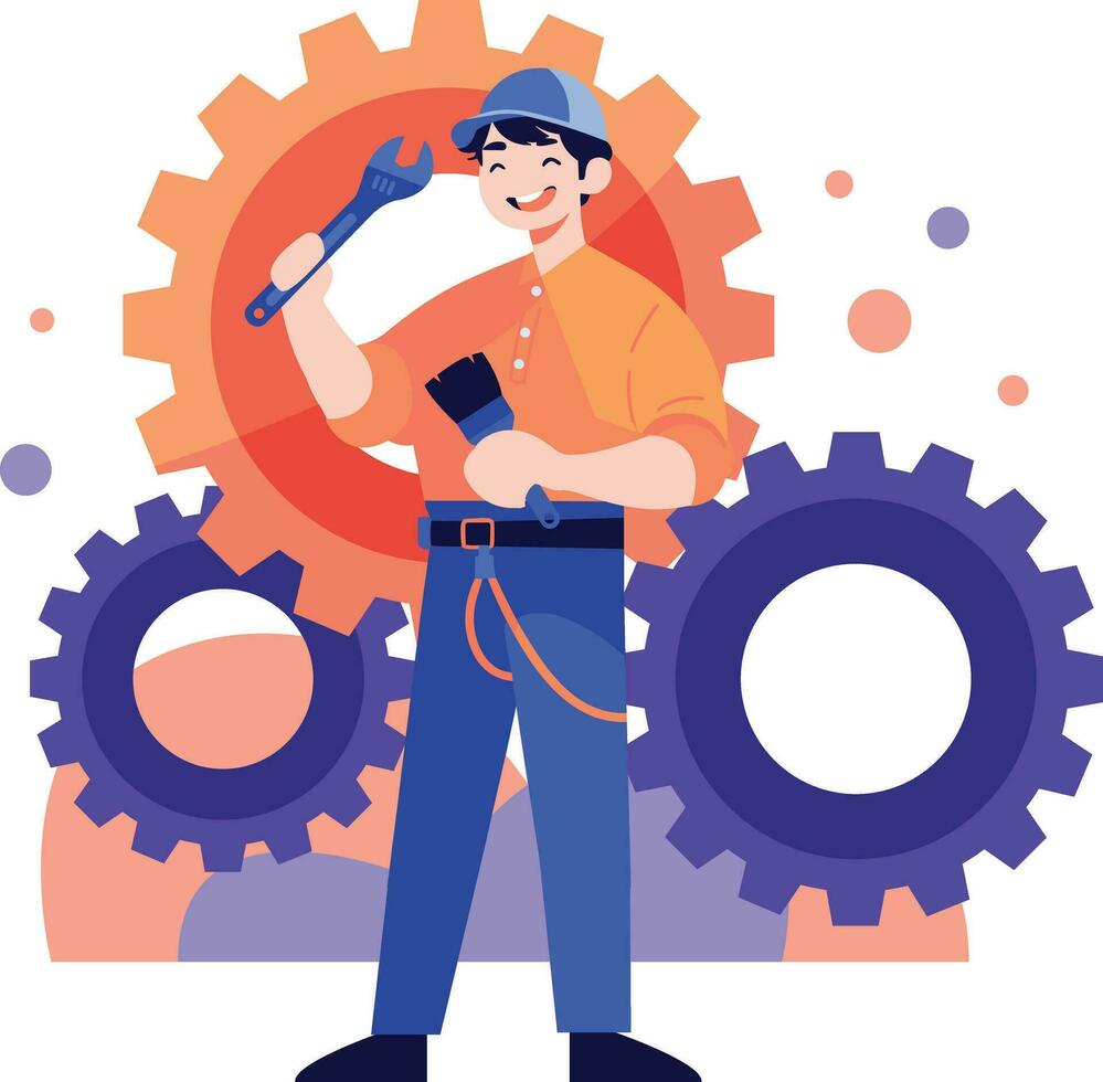 Hand Drawn Engineer or architect in flat style Pro Vector