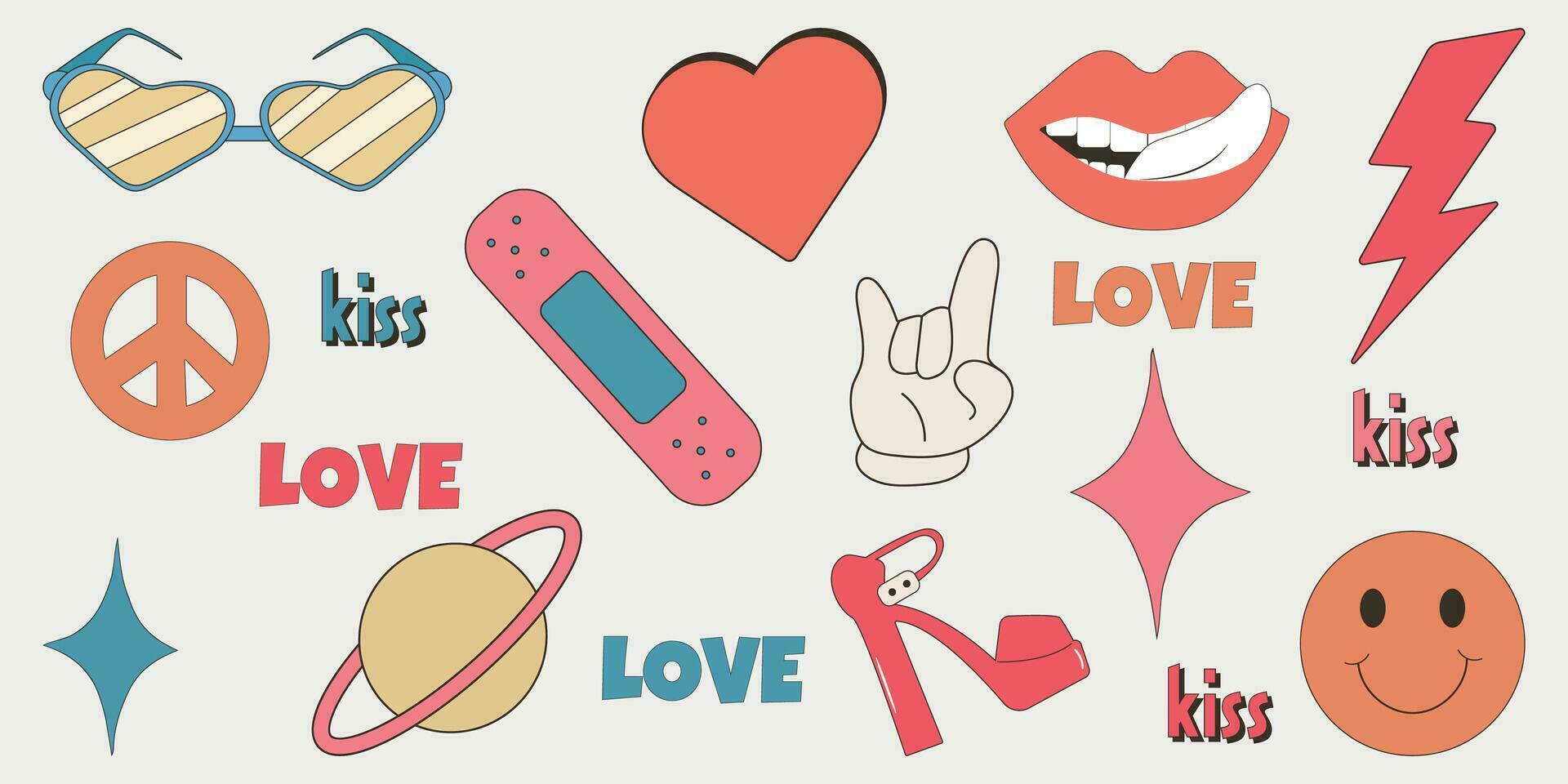 Y2k collection. y2k. 2000s.Retro y2k style.Cartoon style. Vector set of design elements.Retro elements.Retro hipster y2k set Pro Vector