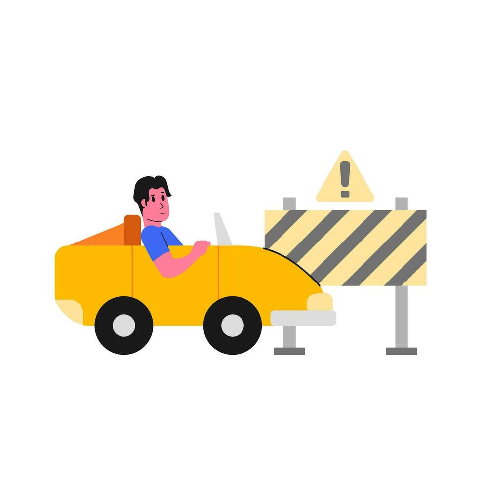 Man Ride Car with caution at way concept for bad gateway empty state illustration Pro Vector