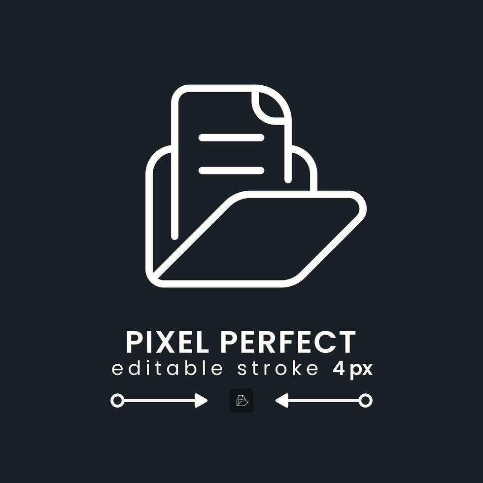 Computer files folder white linear desktop icon on black. Online documents. Organizing information. Pixel perfect, outline 4px. Isolated user interface symbol for dark theme. Editable stroke Pro Vector
