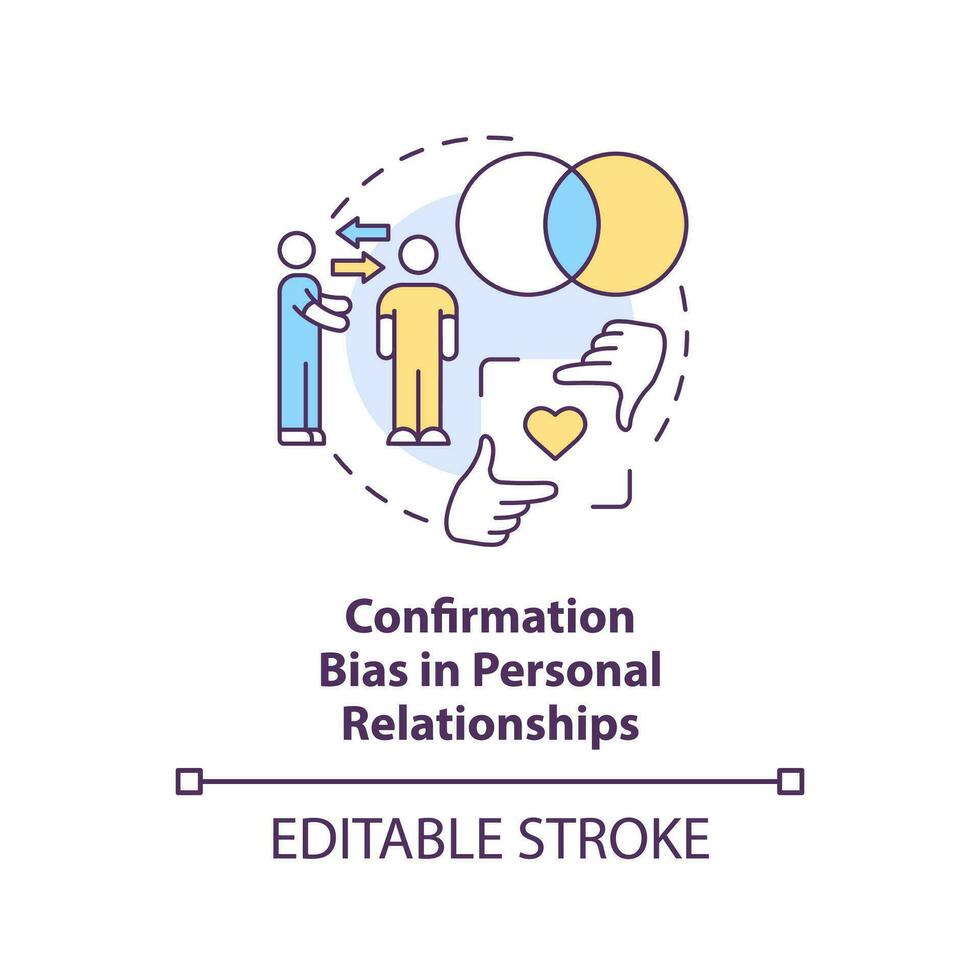 Confirmation bias in relationships concept icon. Example of cognitive prejudice abstract idea thin line illustration. Isolated outline drawing. Editable stroke Pro Vector