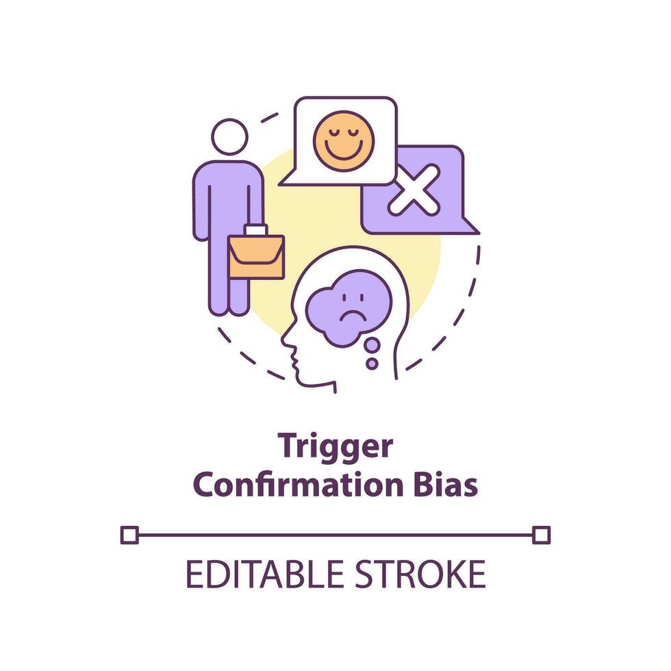 Trigger confirmation bias concept icon. Cognitive prejudice example in recruitment abstract idea thin line illustration. Isolated outline drawing. Editable stroke Pro Vector