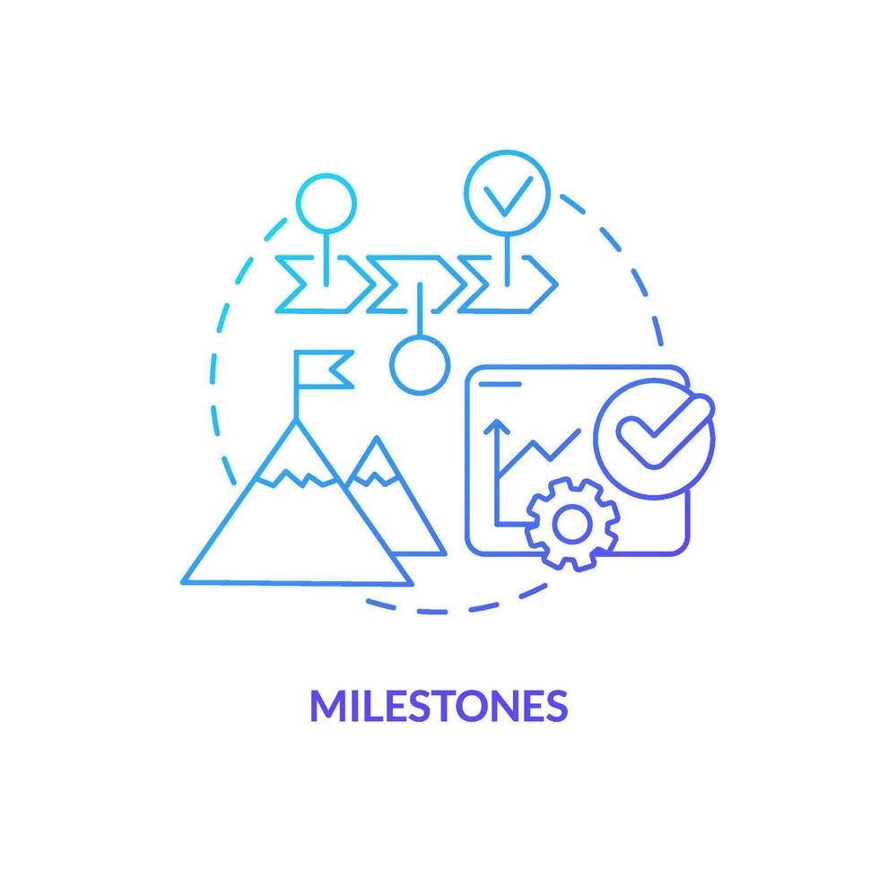 Milestones blue gradient concept icon. Marks of working tasks completion. Project plan includes abstract idea thin line illustration. Isolated outline drawing Pro Vector and Pro SVG