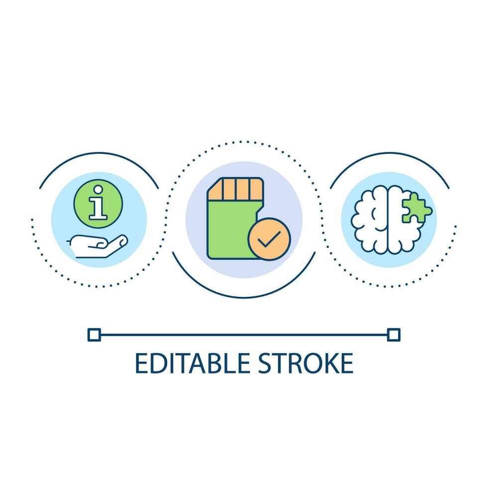 Memory brain storage loop concept icon. Keep information in mind. Retain knowledge. Memorizing things abstract idea thin line illustration. Isolated outline drawing. Editable stroke Pro Vector