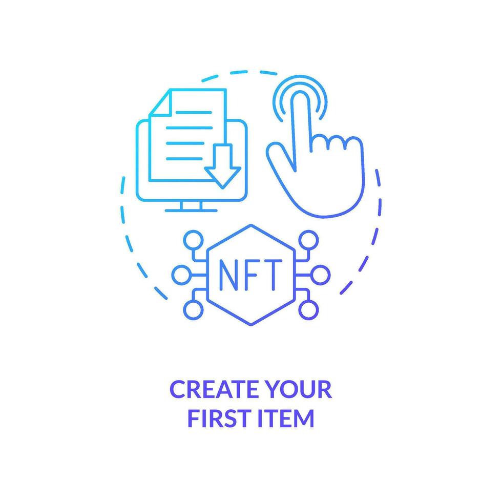 Create your first item blue gradient concept icon. Upload file on marketplace. NFTs minting process abstract idea thin line illustration. Isolated outline drawing Pro Vector and Pro SVG