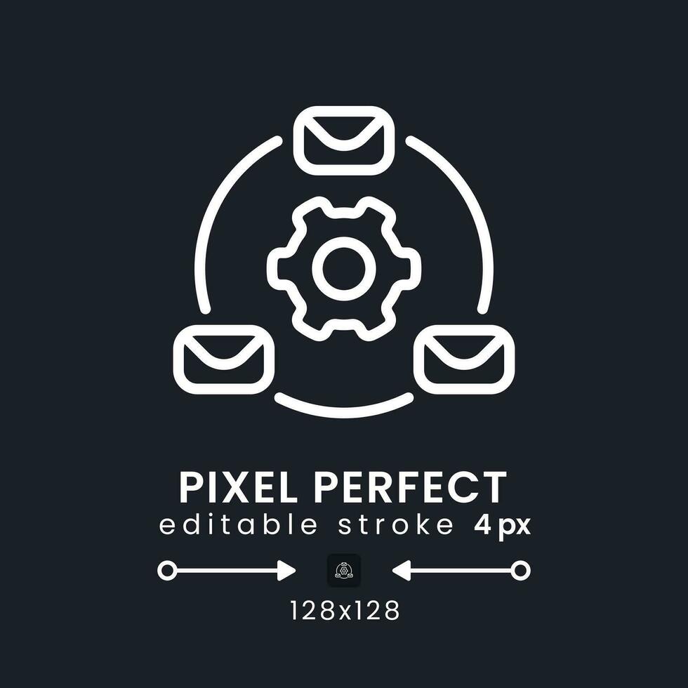 Email management white linear desktop icon on black. Productivity tool. Inbox organizer. Pixel perfect 128x128, outline 4px. Isolated user interface symbol for dark theme. Editable stroke Pro Vector