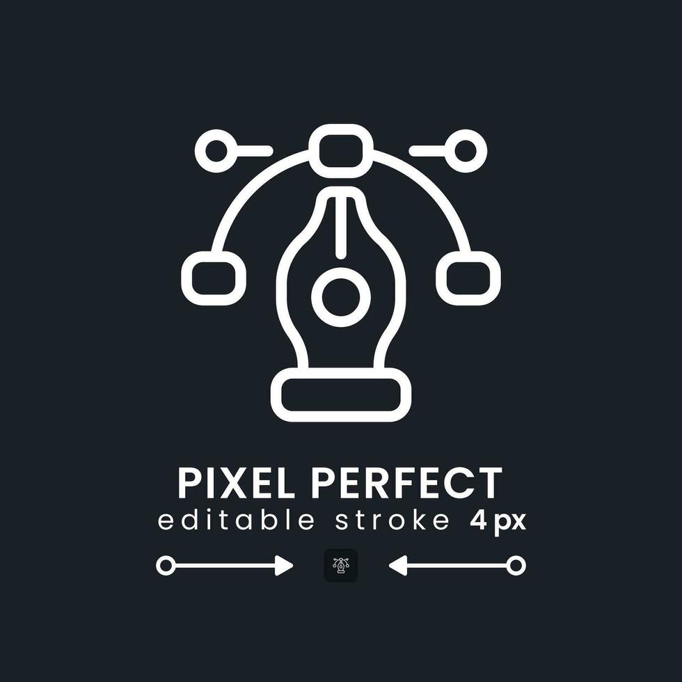 Pen tool cursor white linear desktop icon on black. Computer graphics. Bezier curve control points. Pixel perfect, outline 4px. Isolated user interface symbol for dark theme. Editable stroke Pro Vector