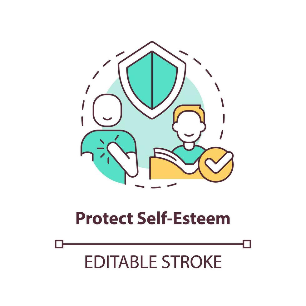 Protect self-esteem concept icon. Feeling confident. Explanation of cognitive bias abstract idea thin line illustration. Isolated outline drawing. Editable stroke Pro Vector