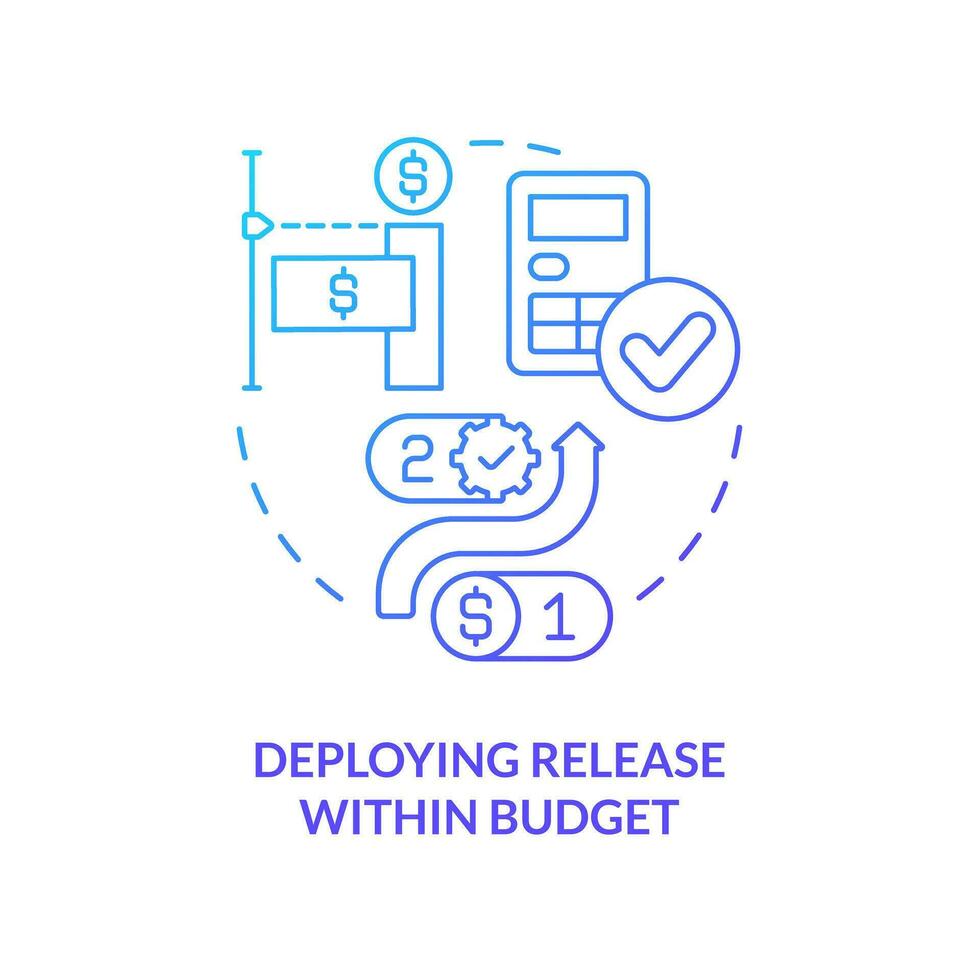 Deploying within budget blue gradient concept icon. Project efficiency. Release management success factor abstract idea thin line illustration. Isolated outline drawing Pro Vector and Pro SVG