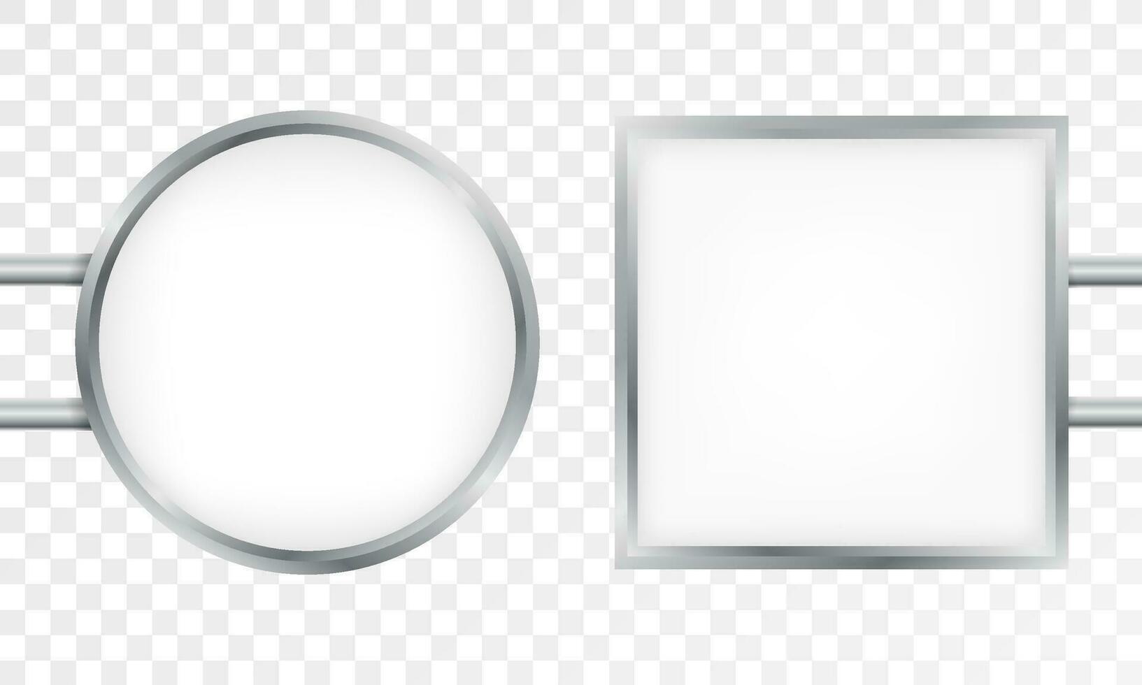 Circular signboard mock up isolated on gray background. Circular illuminated lightbox with empty space for design. Pro Vector