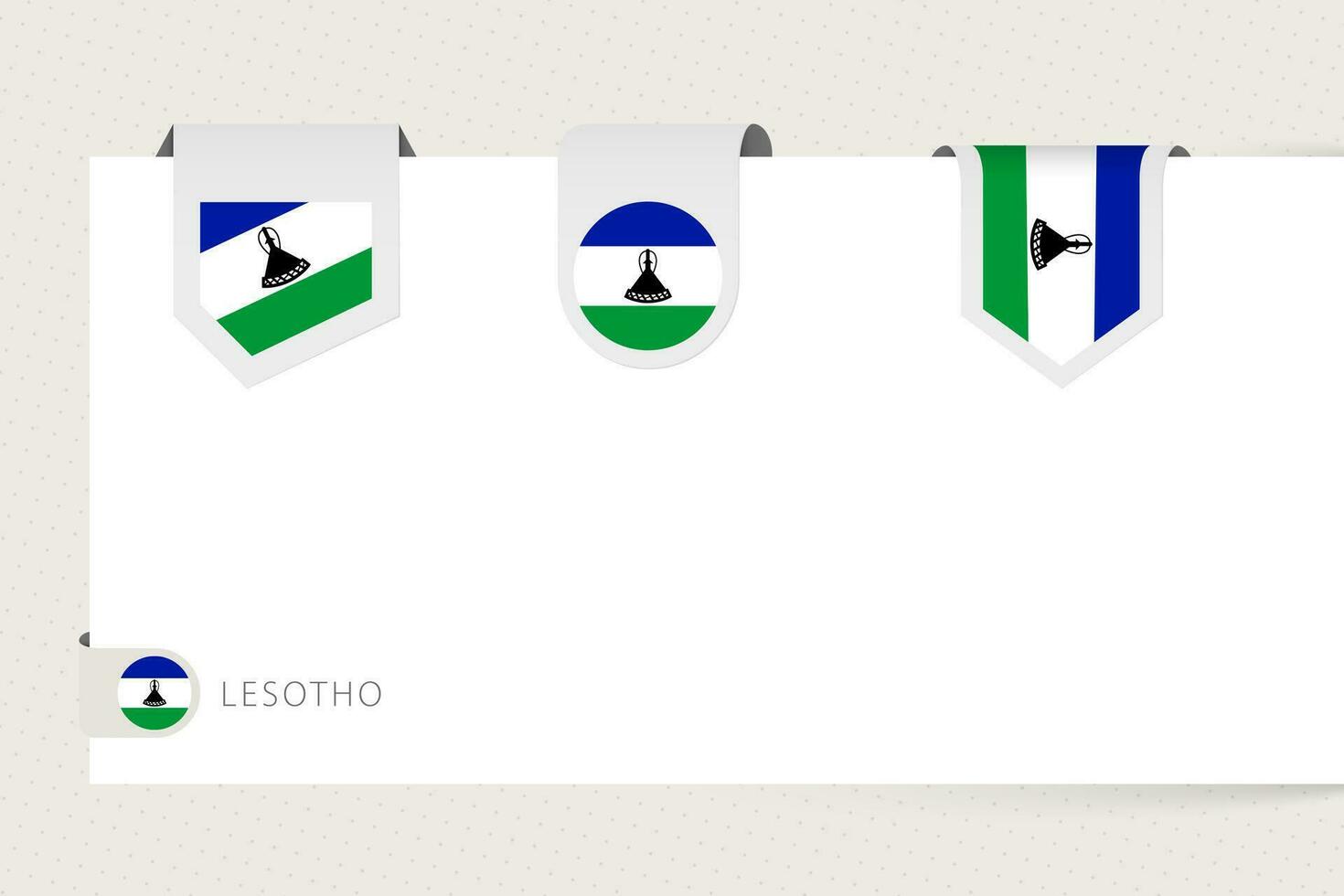 Label flag collection of Lesotho in different shape. Ribbon flag template of Lesotho Pro Vector