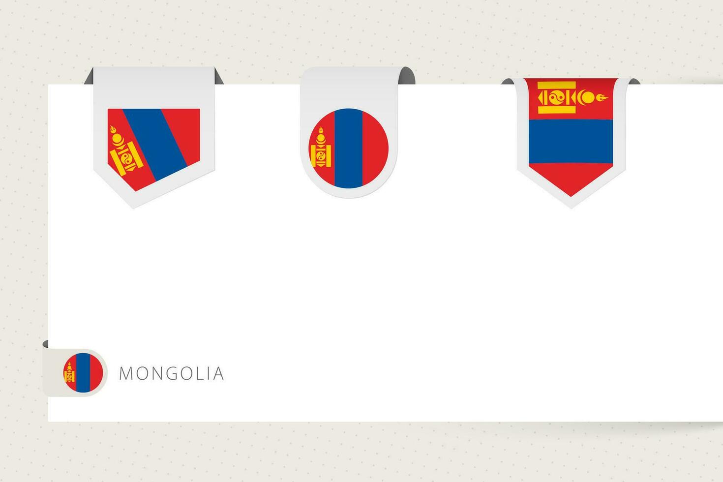 Label flag collection of Mongolia in different shape. Ribbon flag template of Mongolia Pro Vector