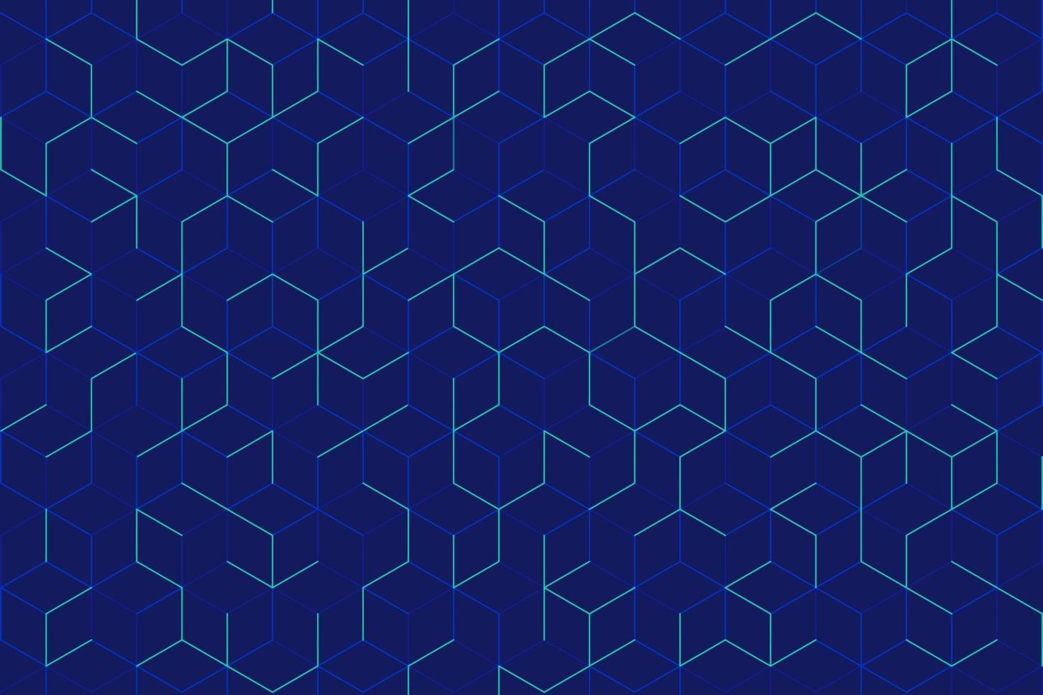 Abstract green cube pattern on dark blue background. Modern lines square mesh. Simple flat geometric design. You can use for cover, poster, banner web, flyer, Landing page, Print ad. Pro Vector
