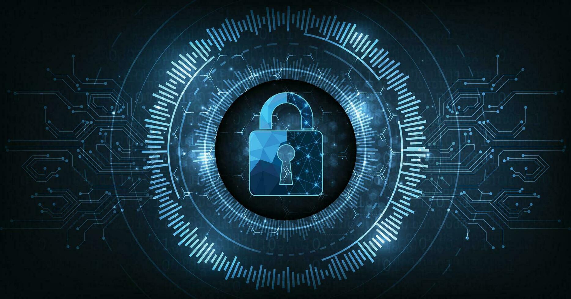 Internet security and Data prevention.Security Padlock lock icon on dark blue background. Pro Vector