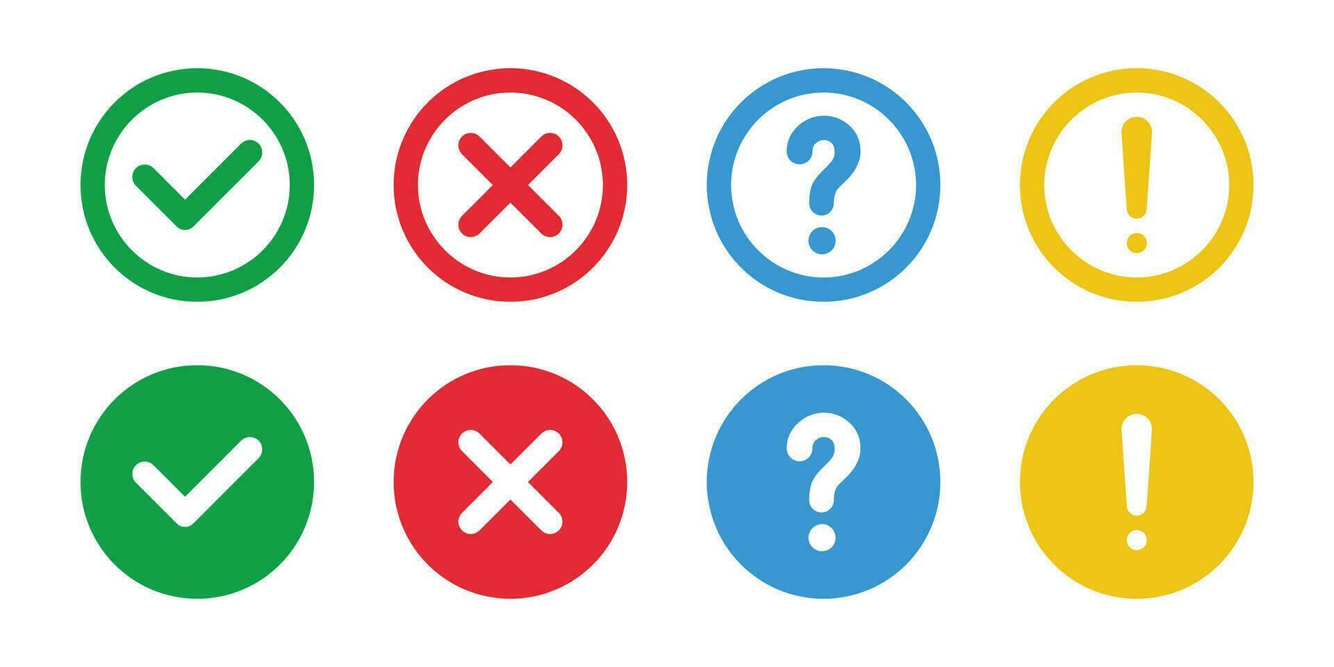 Check and cross, question mark and exclamation point icon set. vector illustration. Pro Vector