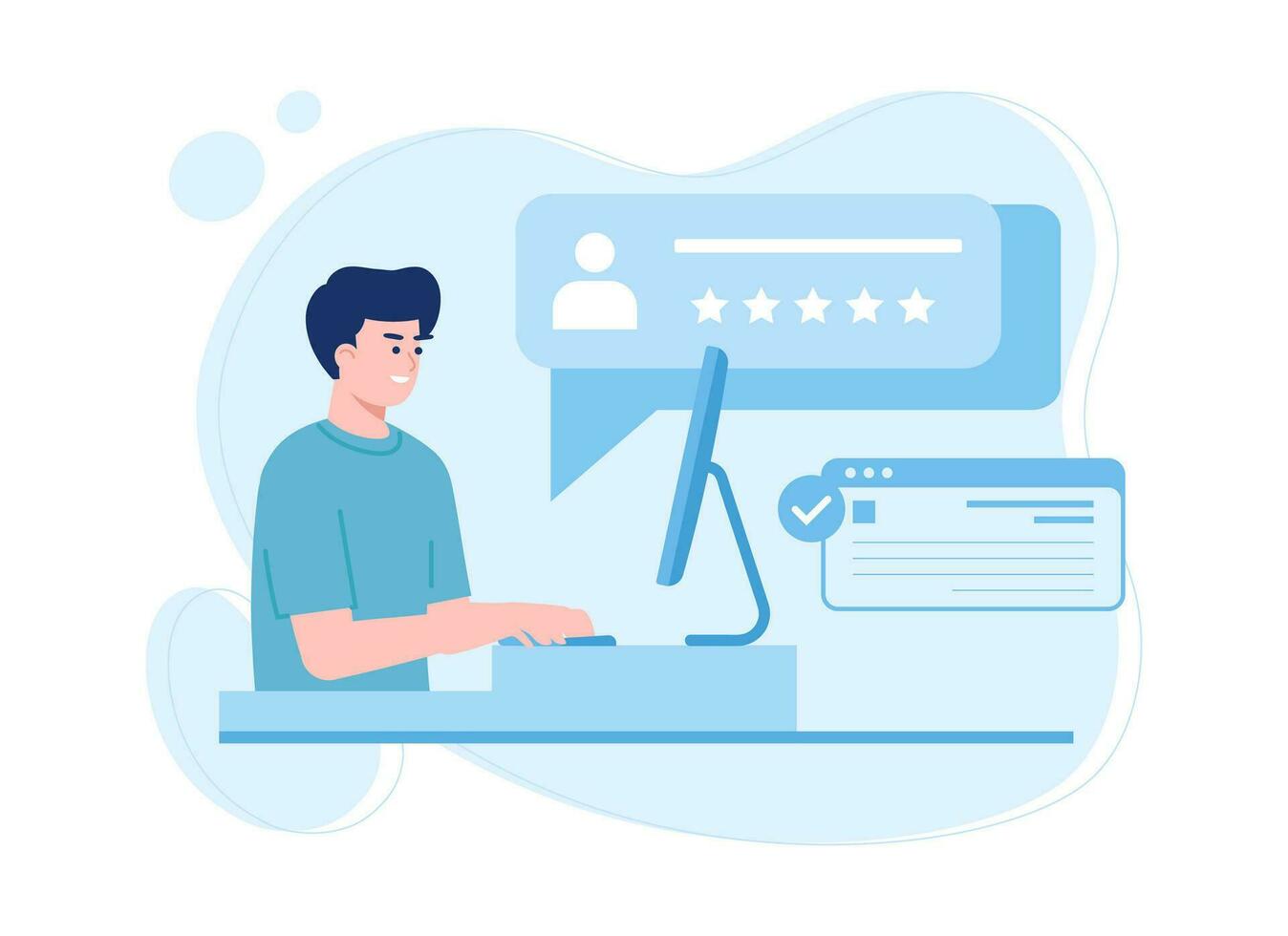 man is getting orders from client on computer concept flat illustration Pro Vector