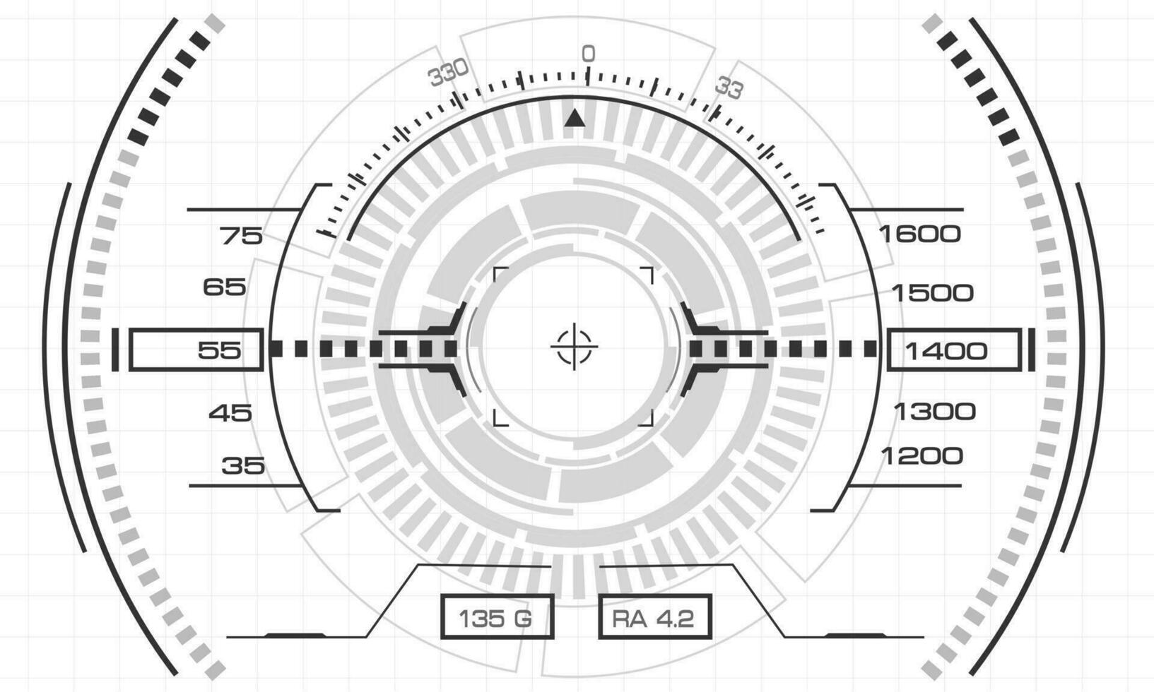 HUD sci-fi interface screen view black line geometric on white design virtual reality futuristic technology creative display vector Pro Vector