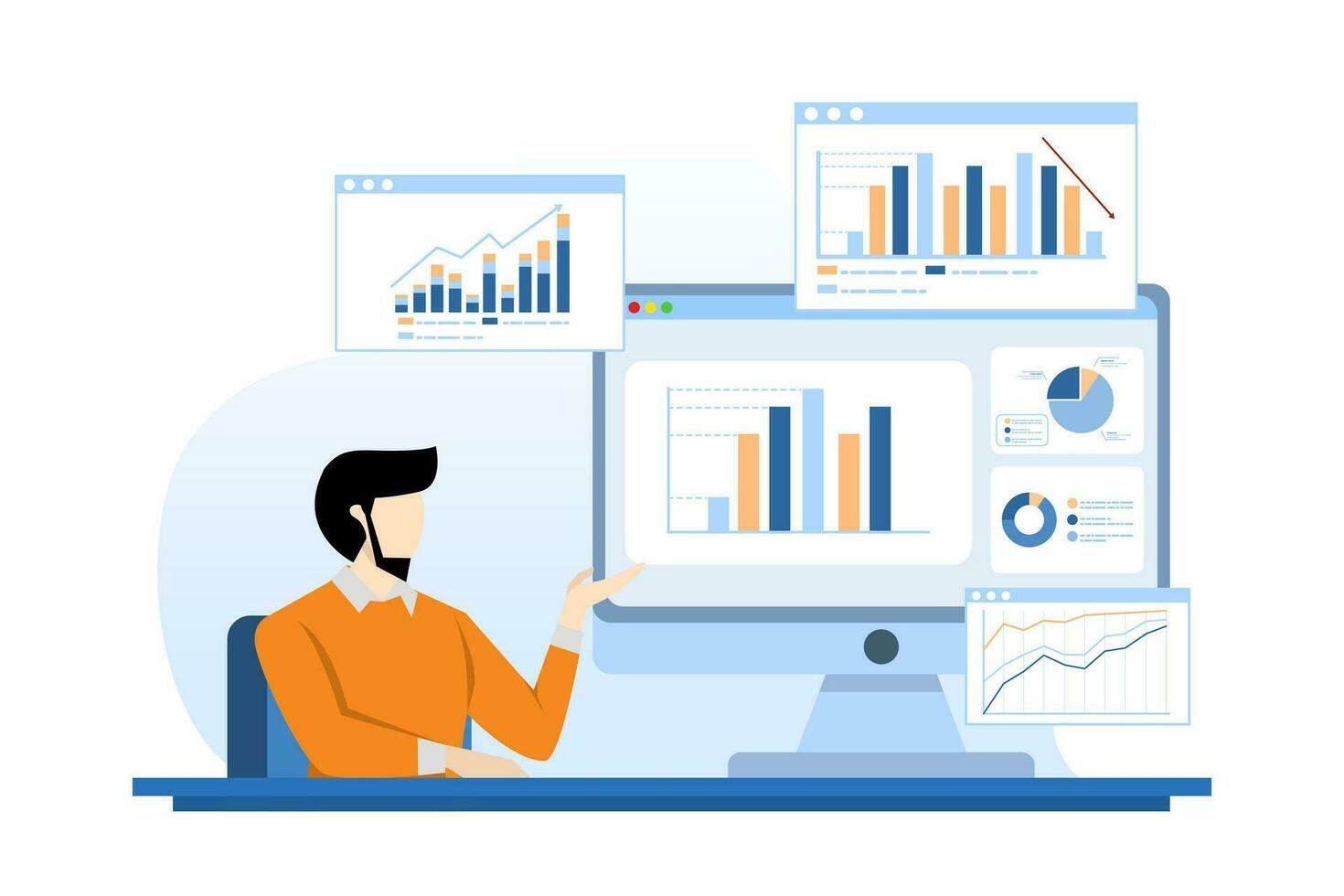 statistics and data analysis concept, business analysis, business financial investment with business team working on monitor chart dashboard, planning, web report dashboard, finance investment. Pro Vector and Pro SVG