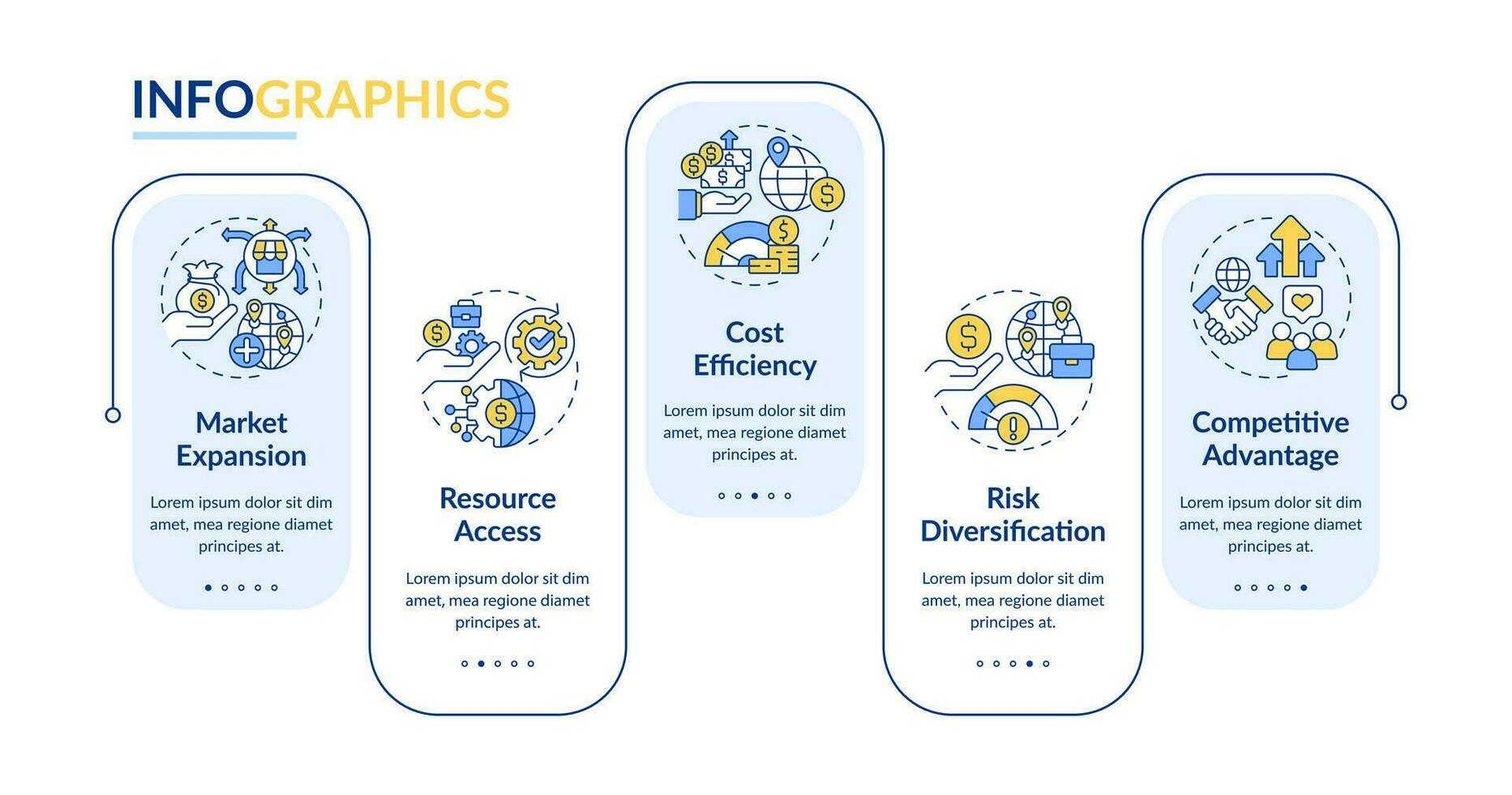 Foreign direct investment vector infographics template, data visualization with 5 steps, process timeline chart. Pro Vector