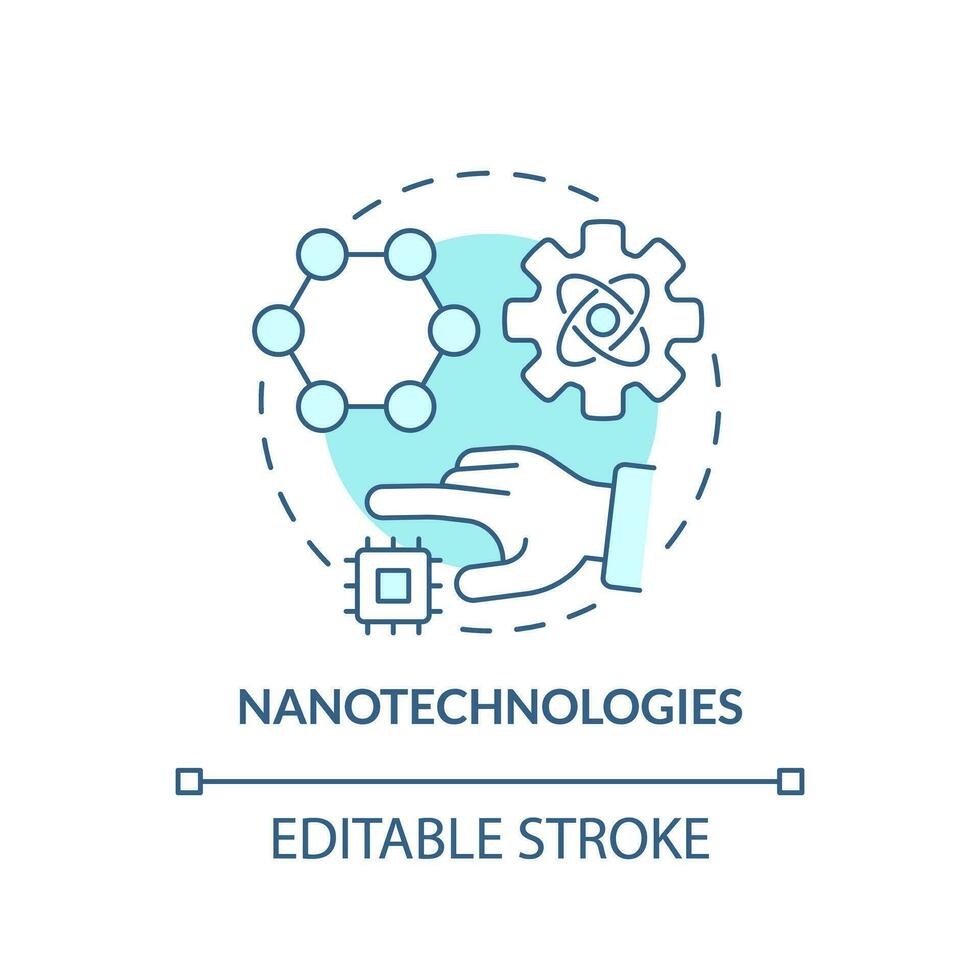 Nanotechnologies turquoise concept icon. Robotizing treatment process. Delivering medication. Technological advance abstract idea thin line illustration. Isolated outline drawing. Editable stroke Pro Vector