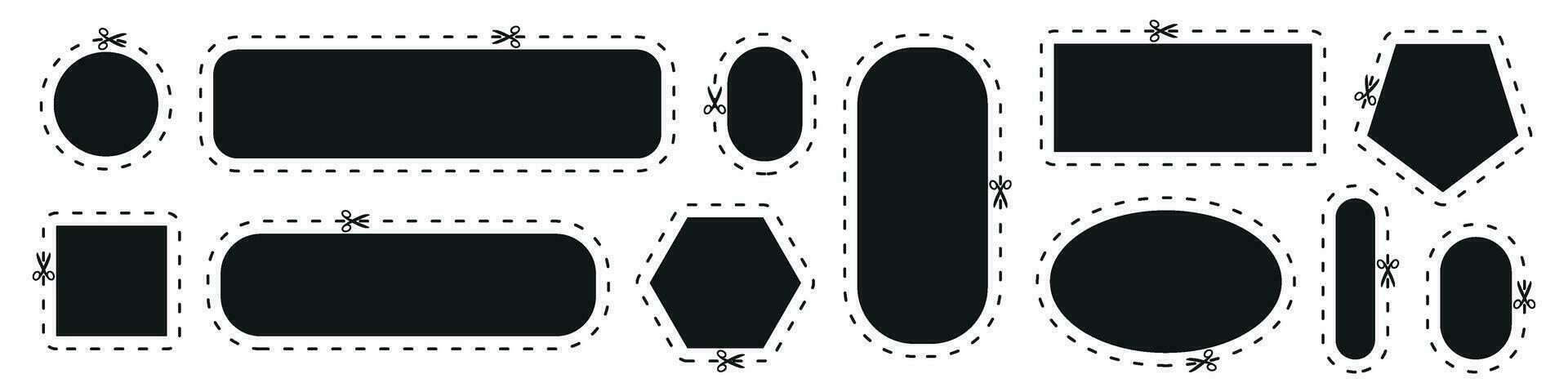 Cut line icons scissor and coupon symbols, dash marks. Voucher with scissors, cut here instructions. Border code and cutout elements. Flat vector illustrations isolated in background. Pro Vector