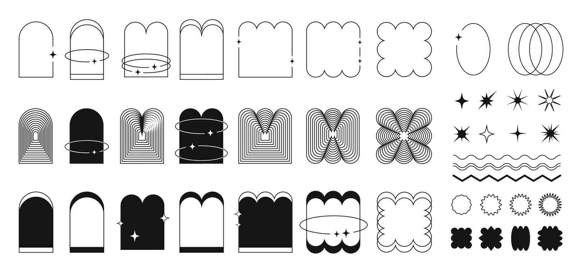 Set of retro geometric shapes and frames, Y2K collection of vector graphic design elements Pro Vector
