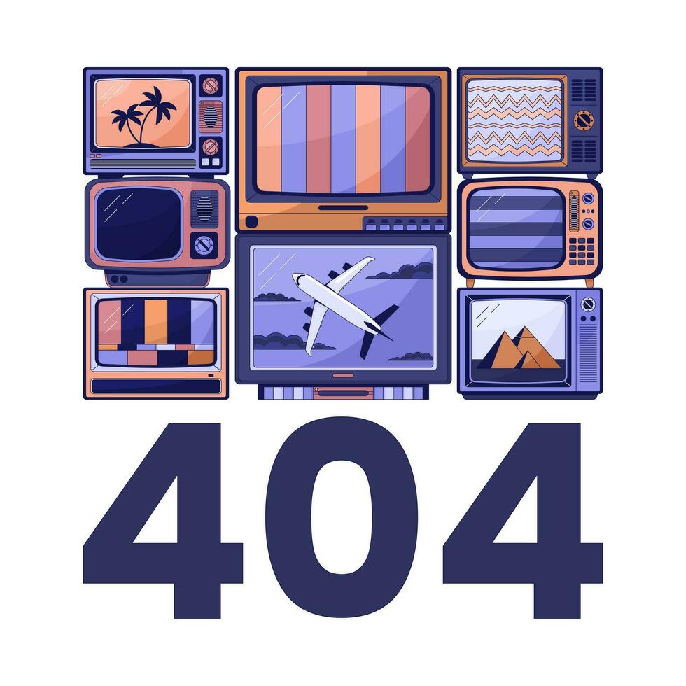 Tv without signals error 404 flash message. Broken old tv with noise. Empty state ui design. Page not found popup cartoon image. Vector flat illustration concept on white background Pro Vector