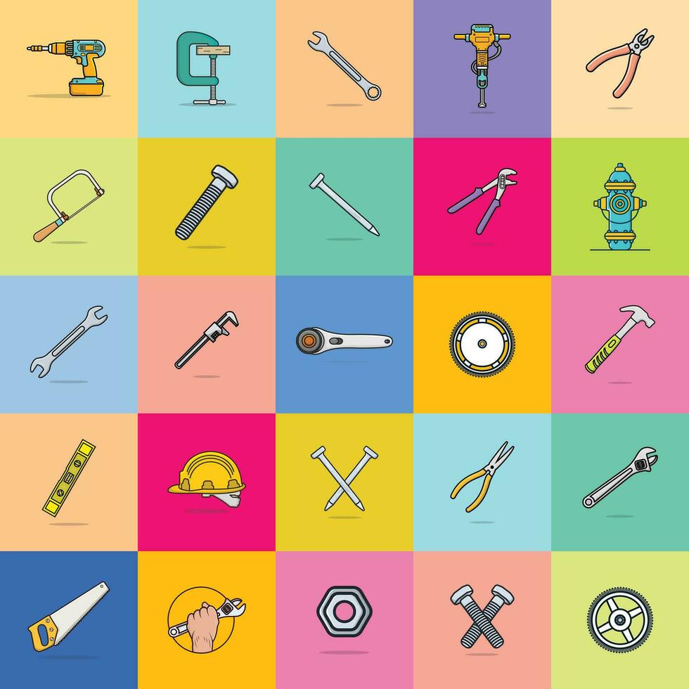 Automobile, car repairing service tools and elements collection vector illustration. Universal repair icon to use for web and mobile UI, set of basic repair elements Pro Vector