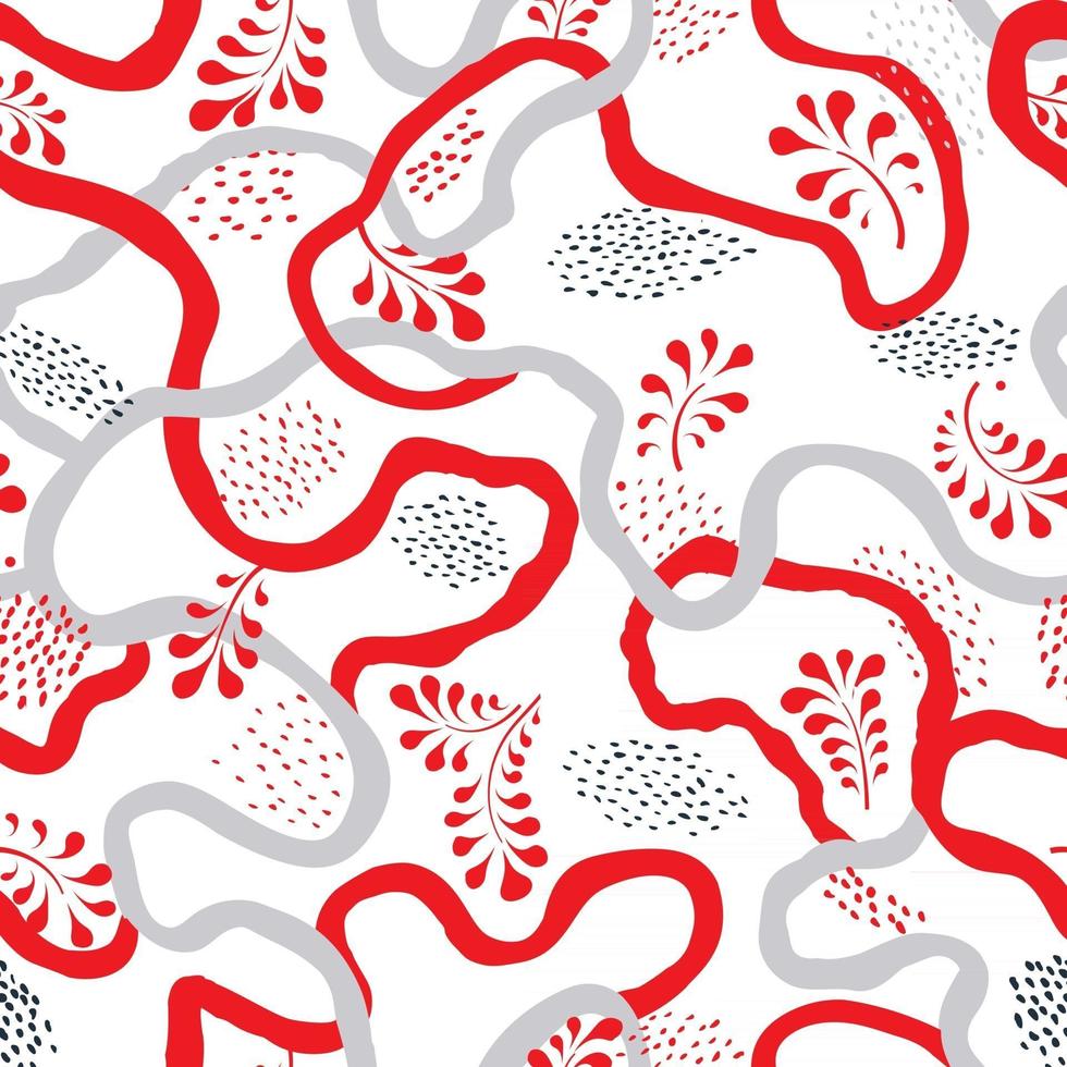 Floral dotted seamless pattern with leaves. Ornamental drawn background. Abstract backdrop with chaotic flowing wriggling lines, dots and leaves Pro Vector