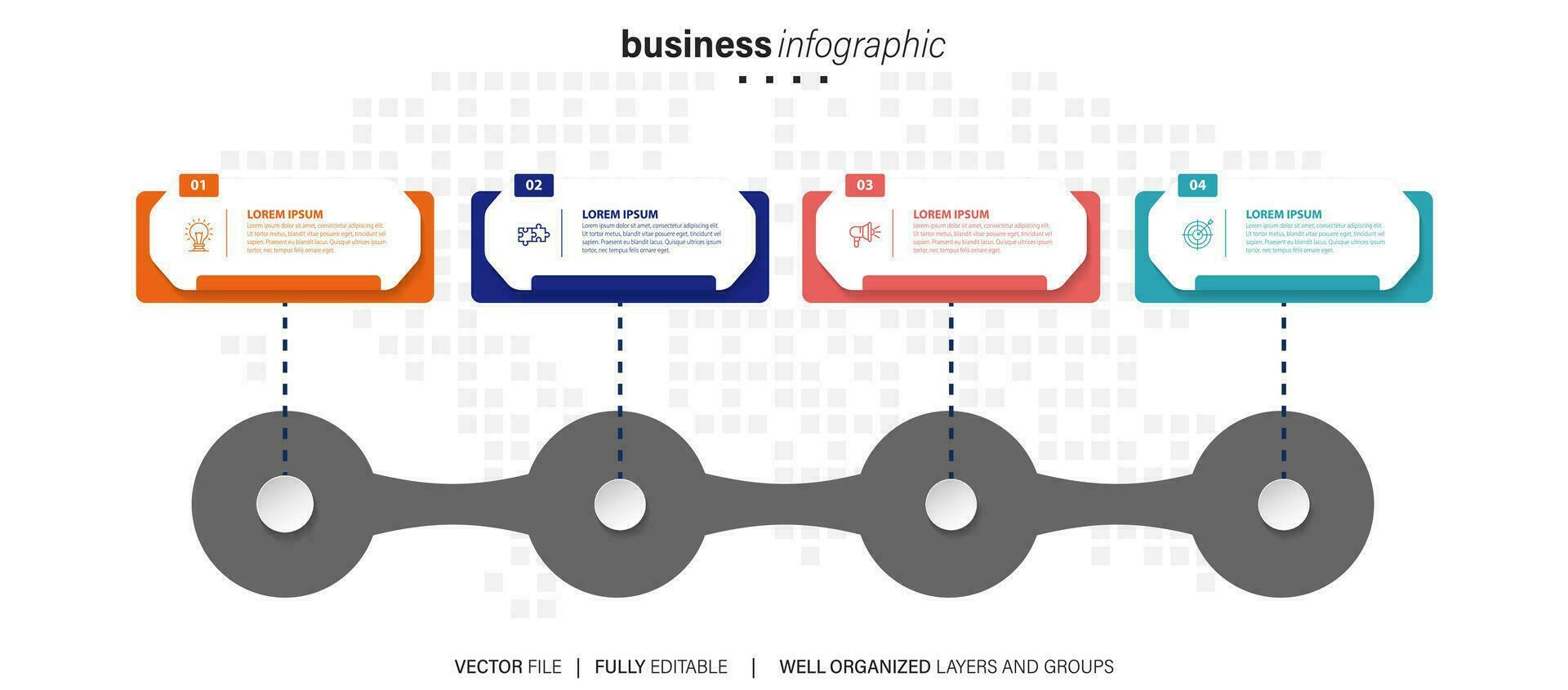 Line step infographic. 4 options workflow diagram, circle timeline number infograph, process steps chart. Linear vector infographics. Process order infographic arrow and steps point illustration Free Vector and Free SVG